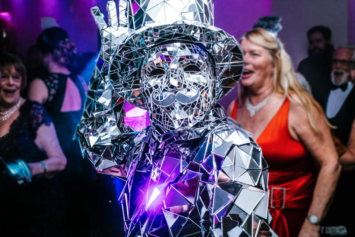 Gekleed in honderden spiegelende stukken transformeert de Mirror Man iedere ruimte. Hij beweegt tussen de gasten, danst mee op de muziek en creëert een magische sfeer. Perfect als binnenkomer, walking act of fotomoment.